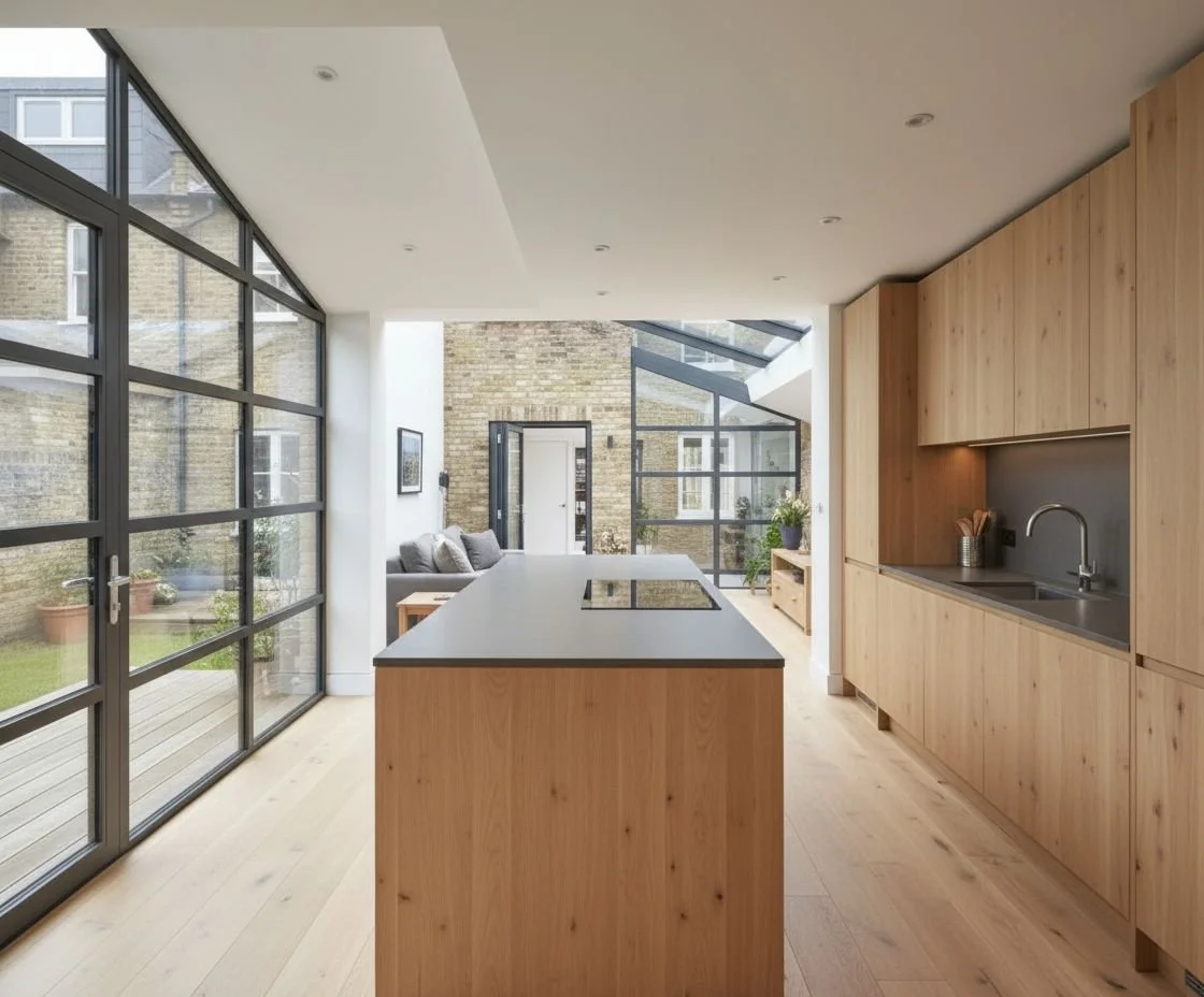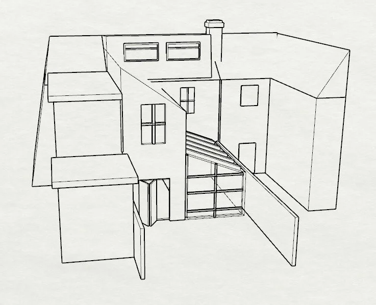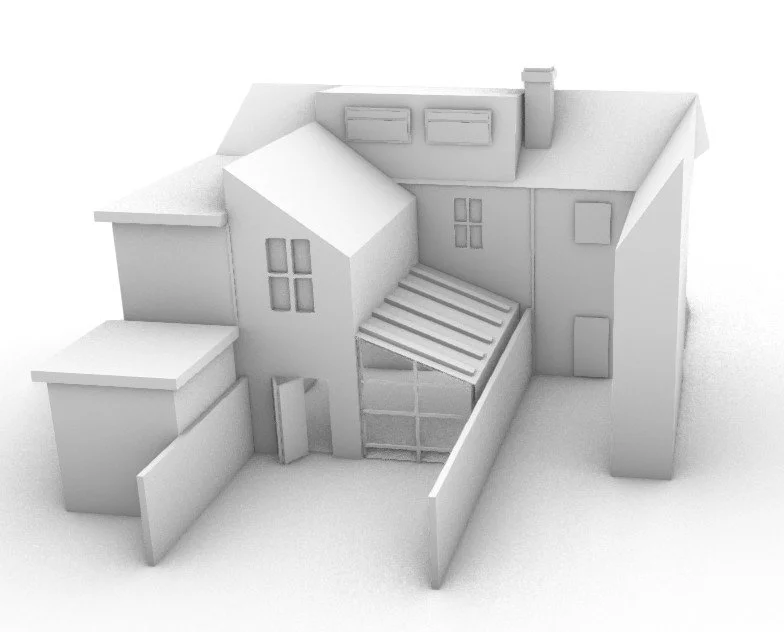 The brief was to create a visualisation of a glass-side extension and second-storey addition to a mid-terraced Oxfordshire home, seamlessly connecting the interior to a maintained garden within a vibrant cultural neighbourhood. The design aimed to introduce a third bedroom while enhancing natural light, spatial flow, and contemporary living, carefully balancing modern elegance with the character of the existing property.